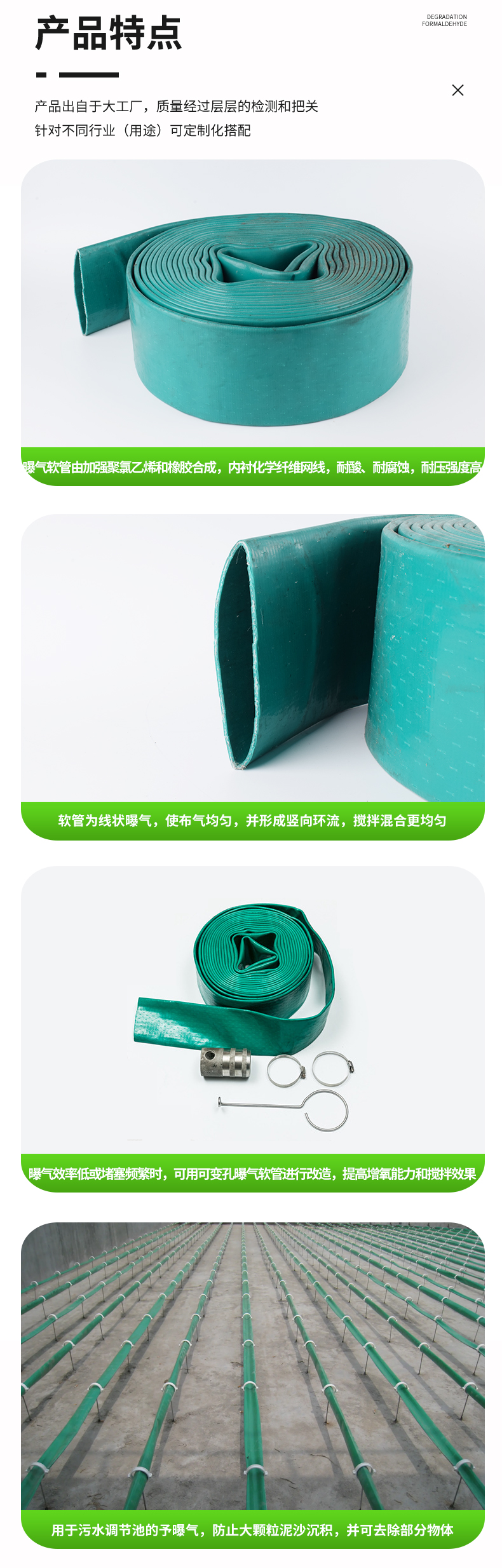 曝氣軟管是引進西德技術(shù)開發(fā)成功的新型增氧曝氣器。薄壁、直通道極大降低了曝氣阻力損失;可變孔及狹縫自動開閉,徹底解決了曝氣器的堵塞問題;軟管為線狀曝氣,使布氣均勻,并形成豎向環(huán)流,攪拌混合更均勻;氣泡小,氧利用率和動力效率高。