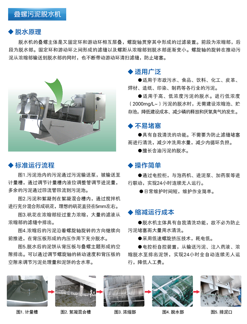 疊片螺旋式污泥脫水機(jī)是一種廣泛用于市政污水處理工程以及石化、輕工、化纖、造紙、制藥、皮革等工業(yè)行業(yè)的水處理設(shè)備