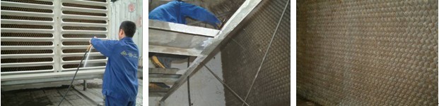 由于冷卻塔長(zhǎng)年暴露在外,風(fēng)扇的吸附力很強(qiáng),使大量的泥沙、污物進(jìn)入塔內(nèi),長(zhǎng)時(shí)間運(yùn)行會(huì)使冷卻塔慢慢的降低散熱能力,布水器出水孔很容易堵塞,泥沙及污垢也很容易進(jìn)入冷卻水系統(tǒng)中去,將直接影響冷卻水系統(tǒng)的正常制冷。為了防止上述情況發(fā)生,將損失將到最低,必須對(duì)冷卻塔進(jìn)行定期清洗。