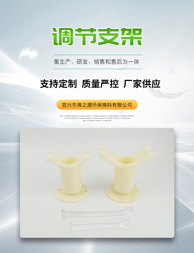 ABS可調(diào)節(jié)支架,又稱調(diào)平支架。一般支架是用于管道的安裝水平調(diào)節(jié)使用。ABS調(diào)節(jié)支架由ABS固定底座、ABS螺紋升降管、尼龍扎帶三部分組成。下部通過膨脹螺栓將可調(diào)管支架固定于曝氣池底,上部通過尼龍扎帶固定曝氣管,高度可以通過ABS螺紋升降管自由調(diào)節(jié)。